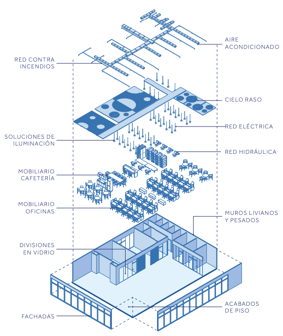 Ponemos a su disposición nuestra experiencia de 20 años en diseño y ejecución de obras de arquitectura de interiores. Brindamos el servicio de interventoría y asesoría profesional para sus proyectos, desde la elección del inmueble más adecuado para su empresa hasta el diseño y la elaboración de un pliego de requerimientos para sus contratistas.